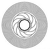 Este poderoso gráfico, é a representação da famosa Bobina Hiranya, conhecida popularmente no Japão.É um acelerador de energias, dinamizador de alimentos e bebidas. Para isso, colocar o alimento no centro do gráfico (que se conserva acima do tempo normal).Utilizado para irradiar e impregnar ambientes com energias de gemas, pedras e cristais (colocadas no centro do gráfico),tem o poder de filtrar as energias de origem psíquica ou física e harmonizar o ambiente.HEPTAPENTAGRAMA